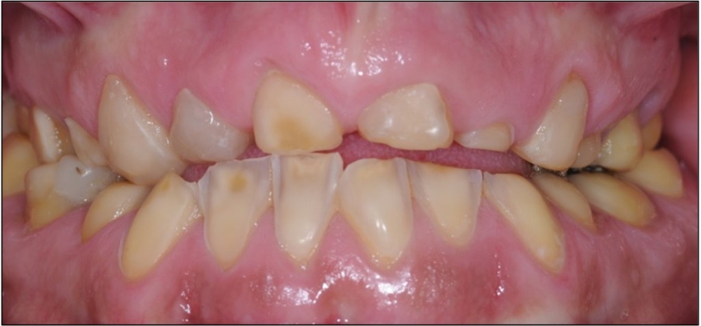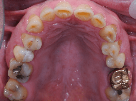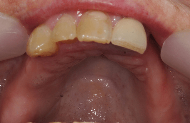 Direct composite is often used to treat toothwear. It is a minimally invasive method that does not damage the underlying tooth structure. It can chip, stain and fail. However, replacement and repair is more straightforward. This case was treated with direct composite alone.
