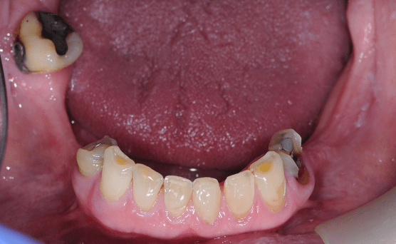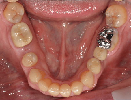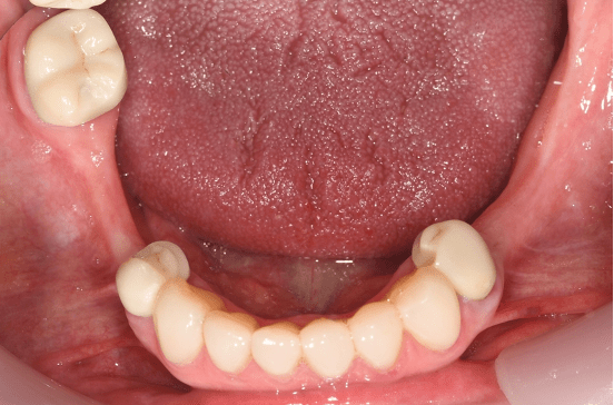Often multiple different methods to restore teeth are needed. A combination of root canal treatment, crowns, direct composite and an adhesive bridge were provided to achieve a functional and stable result in this case.