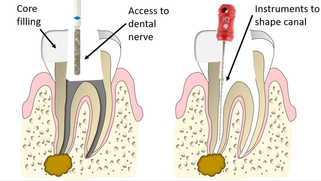 Root canal treatment (endodontic treatment) aims to eliminate bacteria from the infected root canal, prevent reinfection and ultimately save the tooth. In short, root canal treatment involves removal of the infected pulp (nerve), cleaning the canal space and filling the root canal.